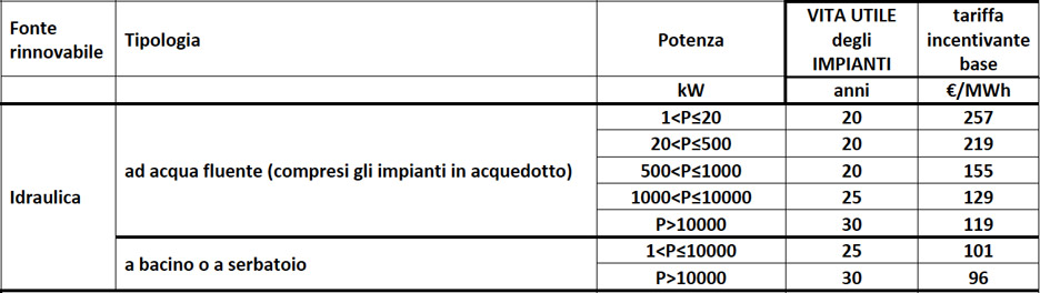 Le modalità di incentivazione della produzione di energia idroelettrica attualmente sono stabilite dal Decreto Ministeriale del 6 luglio 2012.